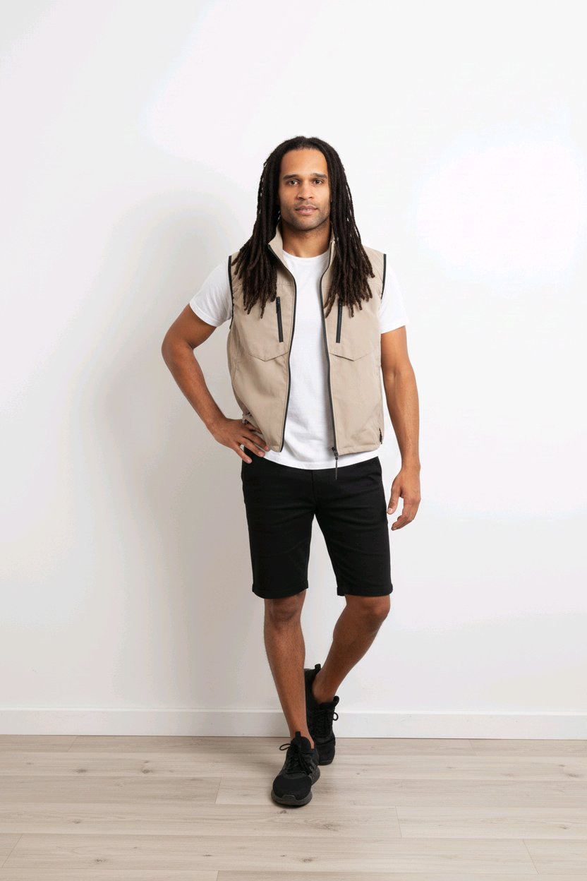 Sans capuche, avec de grandes poches poitrine et des poches basses pratiques : idéal quand on veut du